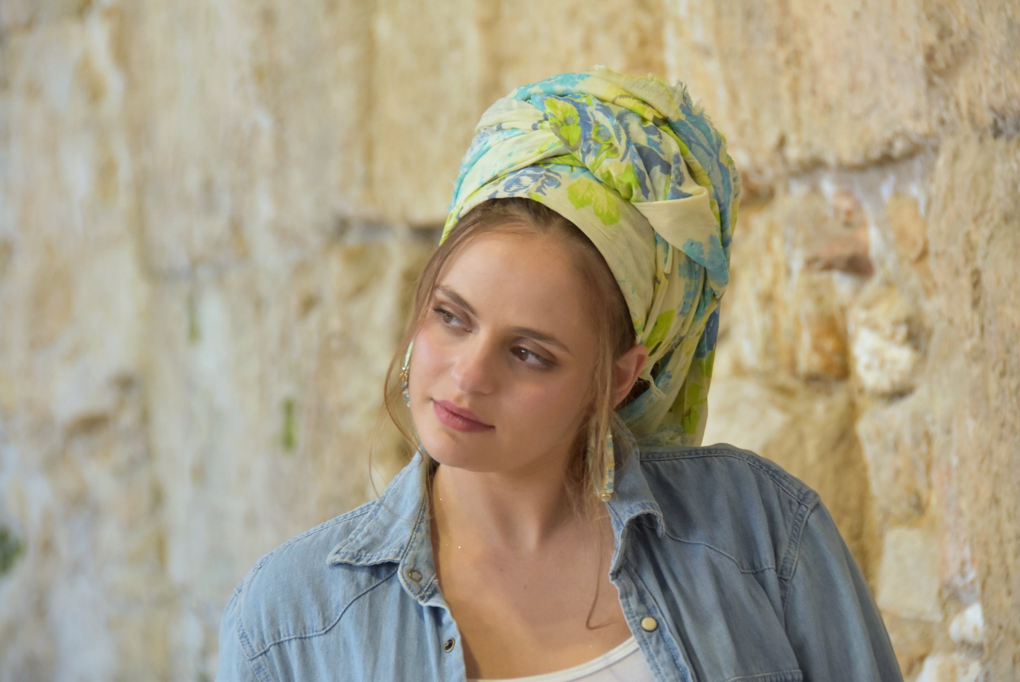 This “Mitpachat “ is a SCARF TICHEL whose shape is a large rectangle and can be worn to conceal all of one’s hair or to show some hair.