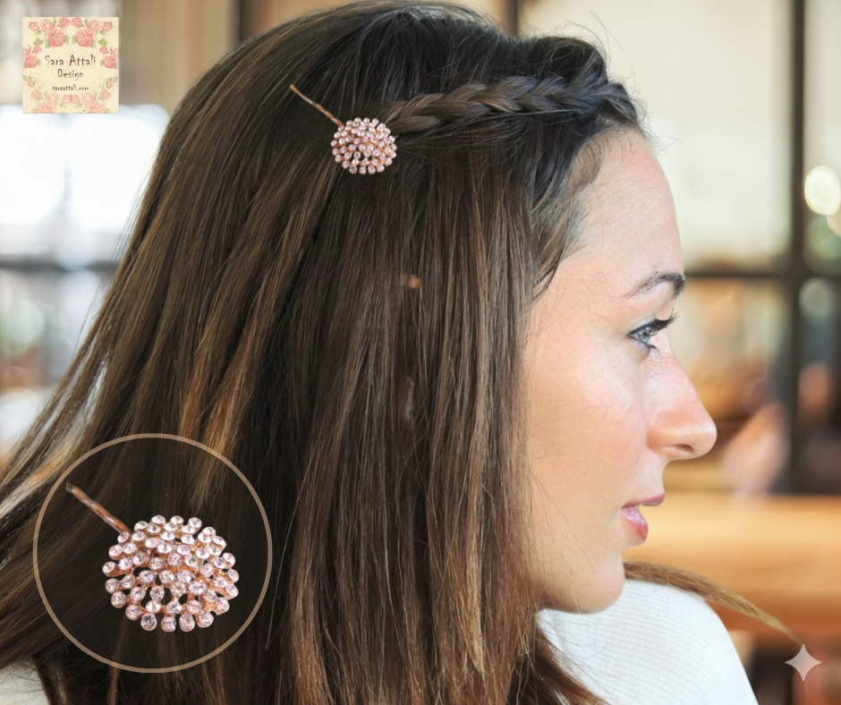 This hair clip pins into your hair like a bobby pin.