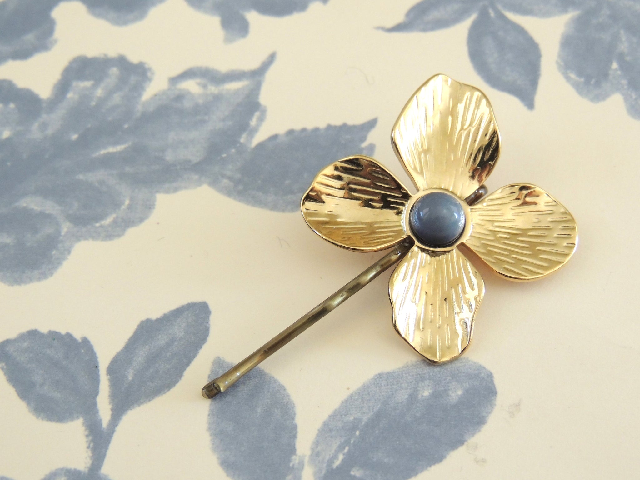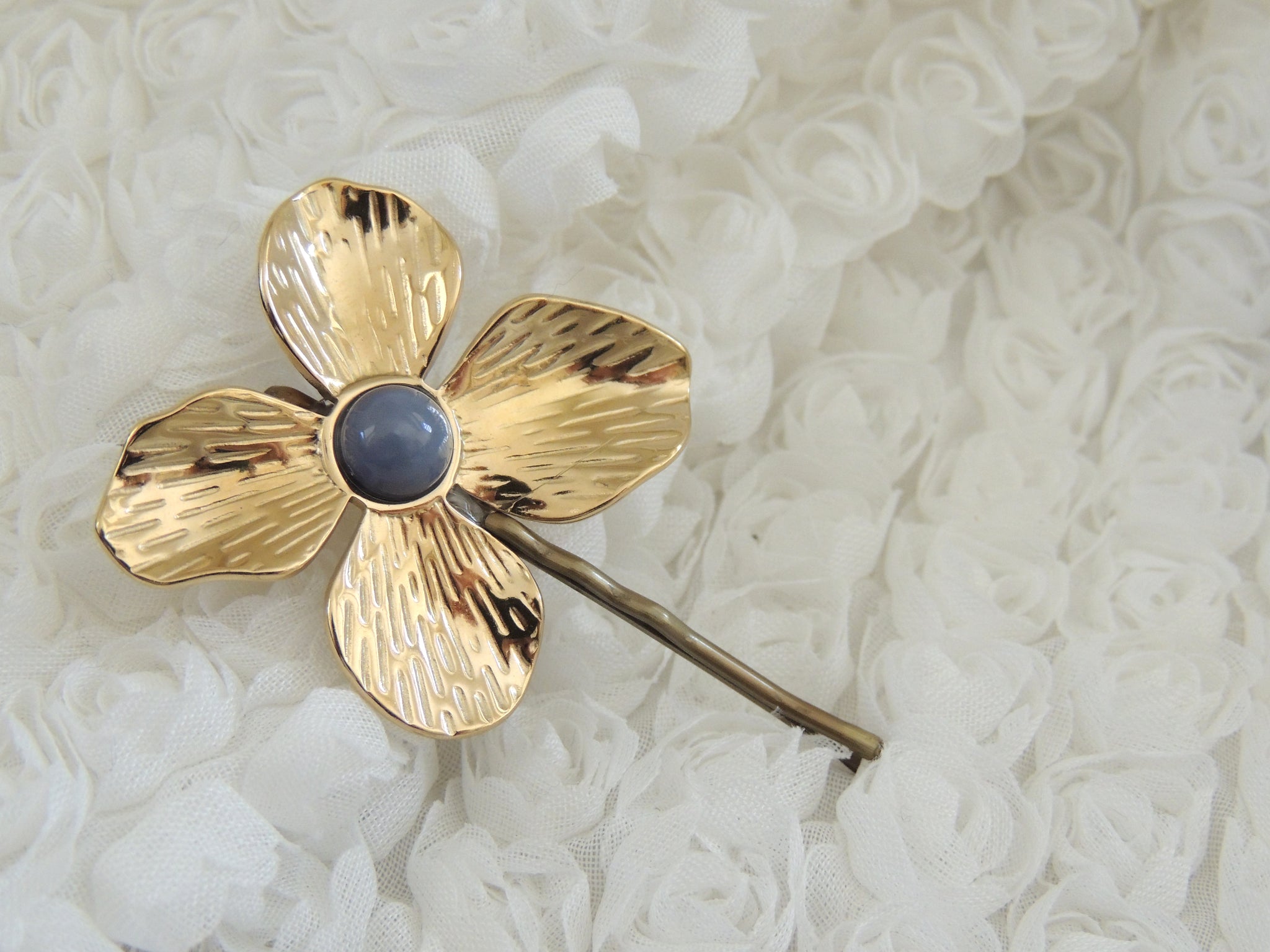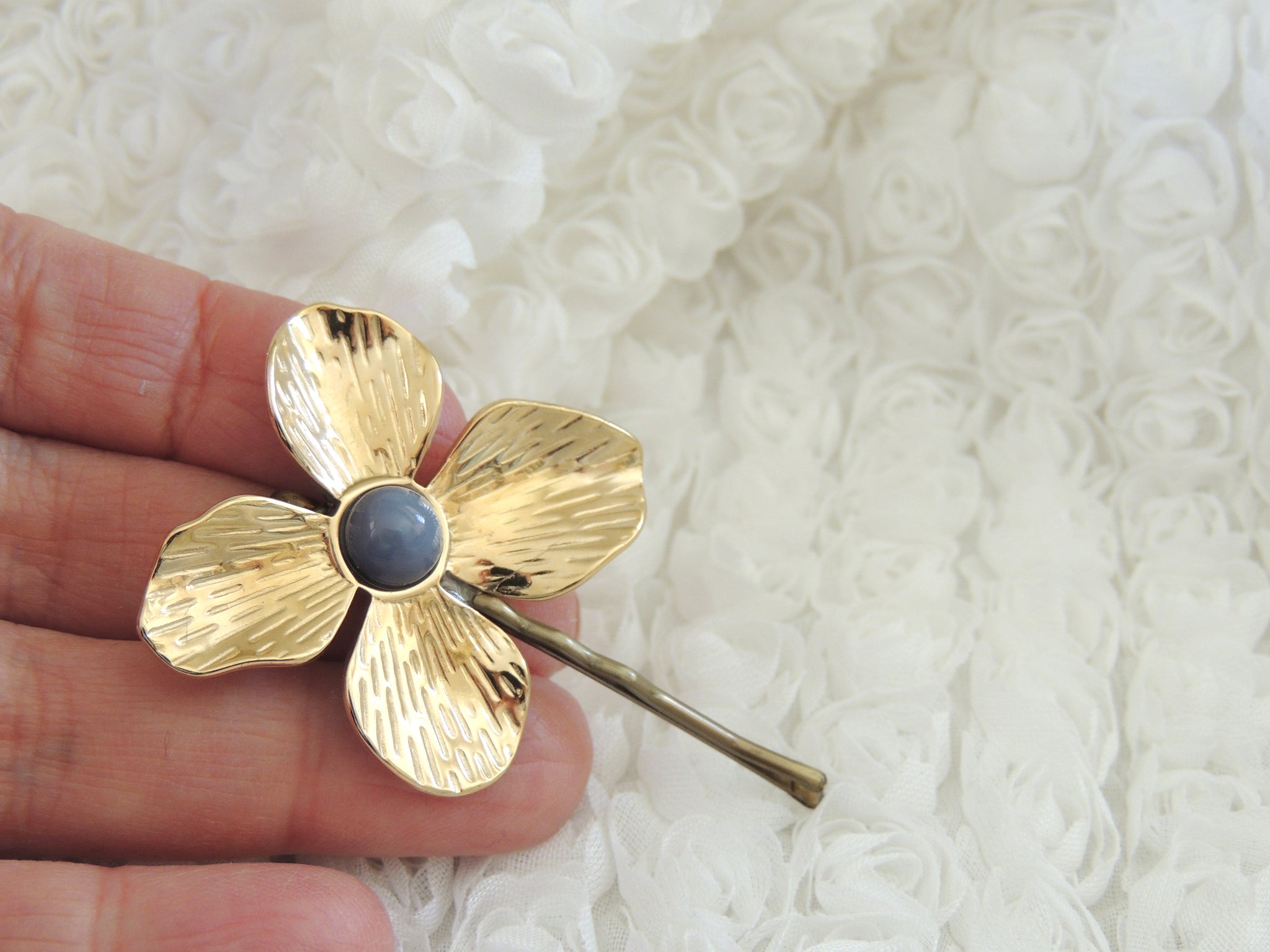 Lovely festive Flower Vintage Hair Pin, Old Gold Pin, Hair Clip, for your Head Covering or right in your hair.